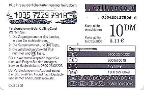 Die Karten-Nummern 01.00 bis 04.00 sind als Chipkarten erschienen und daher unter Chip-Karten in der KD-Serie katalogisiert |